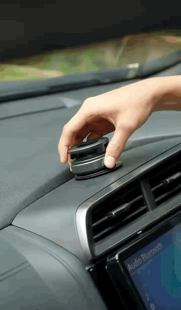 - Premium Vacuum Suction Base - Securely attaches to dashboard, windshield, desk, or any smooth surface